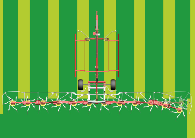 To harvest top quality forage in large fields within the shortest time, high performance tedders are needed to follow high output mowers. That is why there is an increase in demand for tedders with an ideal rotor diameter and wide working widths to deliver the best spreading quality. The working widths of 8.60 m, 10.60 m and 12.70 m meet the demand for high output in full. The optimum configuration of the DYNATECH rotors in combination with the chassis, ensures a perfect spread pattern.