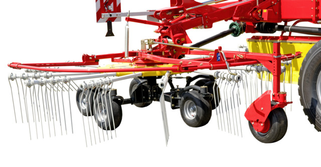 This impressive and proven rotor technology from PÖTTINGER is now also integrated in the four rotor rake.